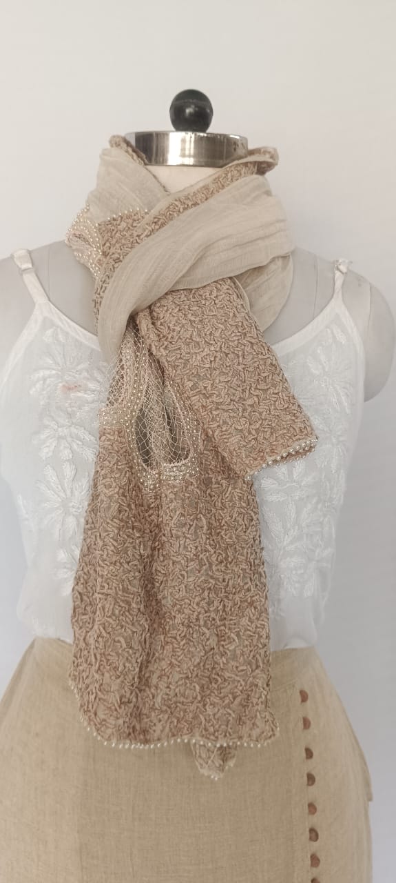 Wrap yourself in timeless elegance with this beautifully crafted silk cotton scarf, delicately embroidered to add a touch of refined artistry. Lightweight yet luxuriously soft, the scarf blends the smooth sheen of silk with the breathability of cotton, making it perfect for all seasons. Intricate hand or machine embroidery graces the fabric with graceful patterns, adding depth, texture, and cultural charm. Whether draped over your shoulders or tied stylishly around your neck, this scarf brings sophistication to everyday wear and special occasions alike.