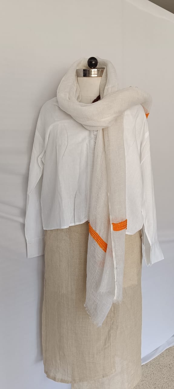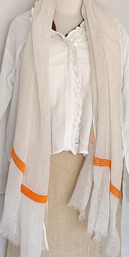 Wrapped in quiet sophistication, my white Lenin sequence scarf is more than just an accessory—it’s a statement. The crisp, clean hue radiates purity and grace, while the subtle sequence detailing adds a glimmer of boldness without overpowering. Soft against the skin and versatile in form, it effortlessly bridges vintage charm with modern flair. Whether draped casually over the shoulders or knotted with purpose, it turns every outfit into a quiet revolution.
