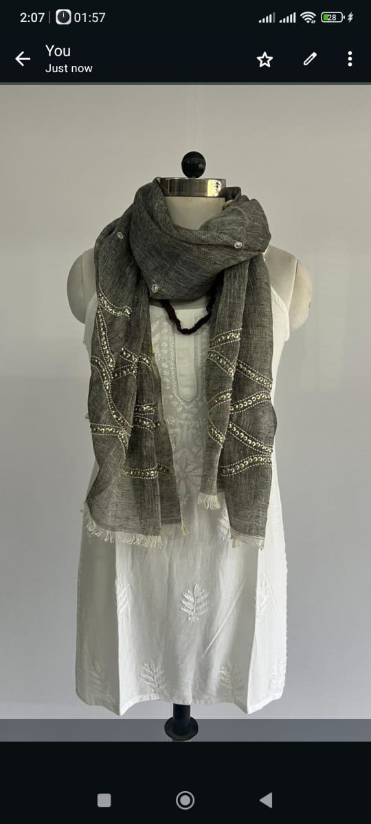 Wrap yourself in understated elegance with our grey lined embroidered scarf, thoughtfully designed to blend comfort with a touch of shimmer. Crafted from soft, breathable fabric, this scarf features delicate embroidery highlighted with subtle sequin work that catches the light just enough to make a quiet statement.