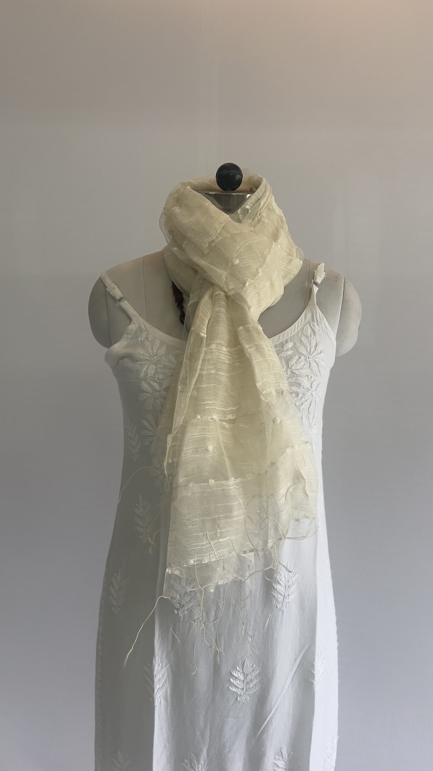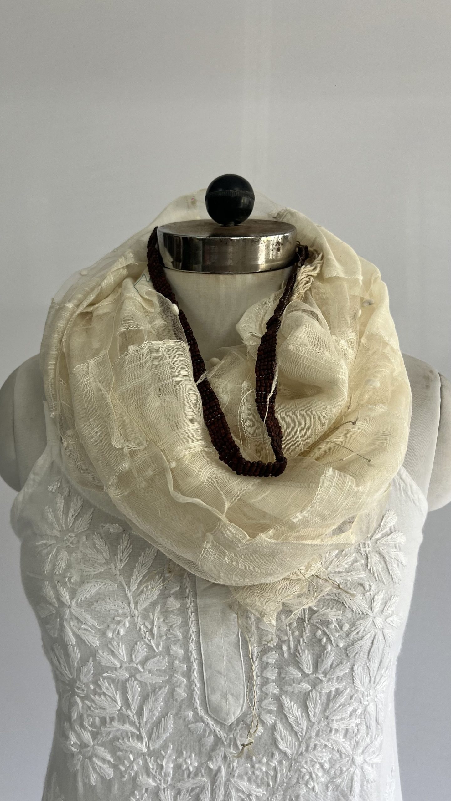 This silk organza scarf feels like wearing a soft breeze. It’s super light, a little sheer, and has that natural shimmer only real silk can give. Whether you’re dressing up for something special or just adding a little charm to a simple outfit, this scarf slips in effortlessly.
